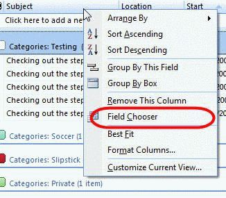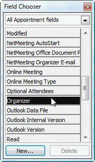 - From the Field Chooser dialog, select All Appointment fields from the dropdown and locate the Organizer field.