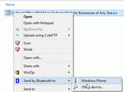Note that not all Bluetooth drivers will add the Send to Bluetooth command.
