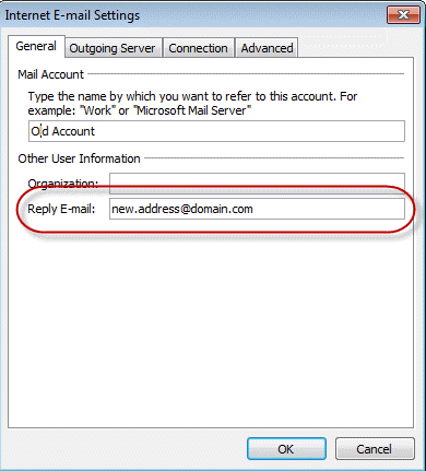 On the General tan, enter your other address in the Reply to field.