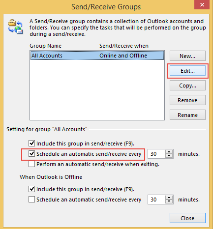 Go to File, Options, Advanced and uncheck the option to Send immediately when connected (it's near the bottom of the page). With this unchecked, outgoing messages will be sent on the next scheduled send. (In older versions of Outlook, go to Tools, Options, Mail Setup.)