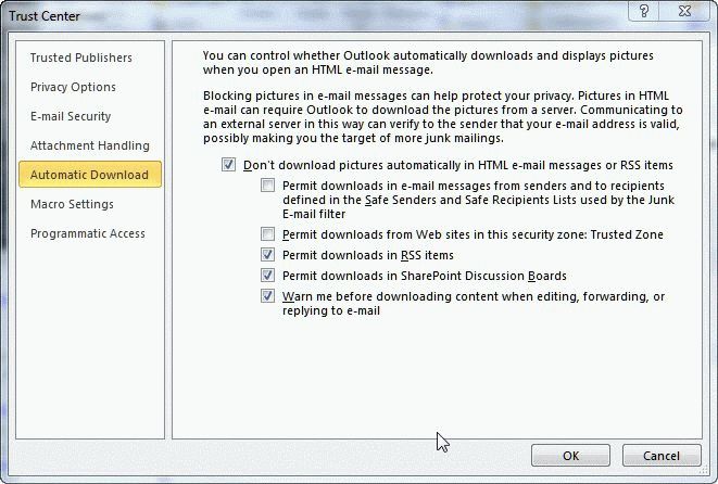 I don't allow any automatic downloads, not even from trusted addresses, but Fiddler shows traffic to 102.112.2O7.net when I select a message that causes Outlook to hang.