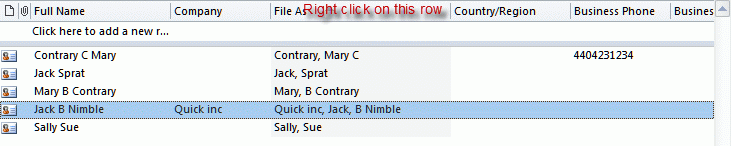 - Right click on the row of field names above the contacts and choose Field Chooser.