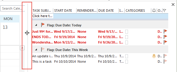 This opens a small task pane at the bottom of the calendar, displaying the tasks that Start on that date. (You can change it to show tasks on their due date instead.)