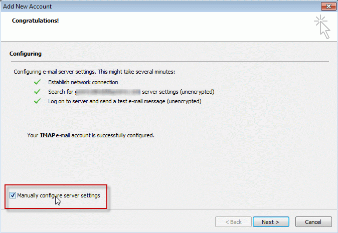 Or click Back and choose Manually configure server settings or additional server types and set up your account.