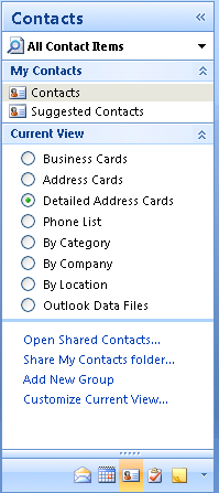 In Outlook 2003 and 2007, the Navigation pane may contain a list of views available for the folder.