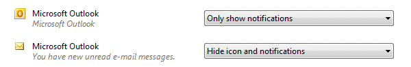 I hate unwanted Notification icons. I can't find any Option that will get rid of the Outlook icon.